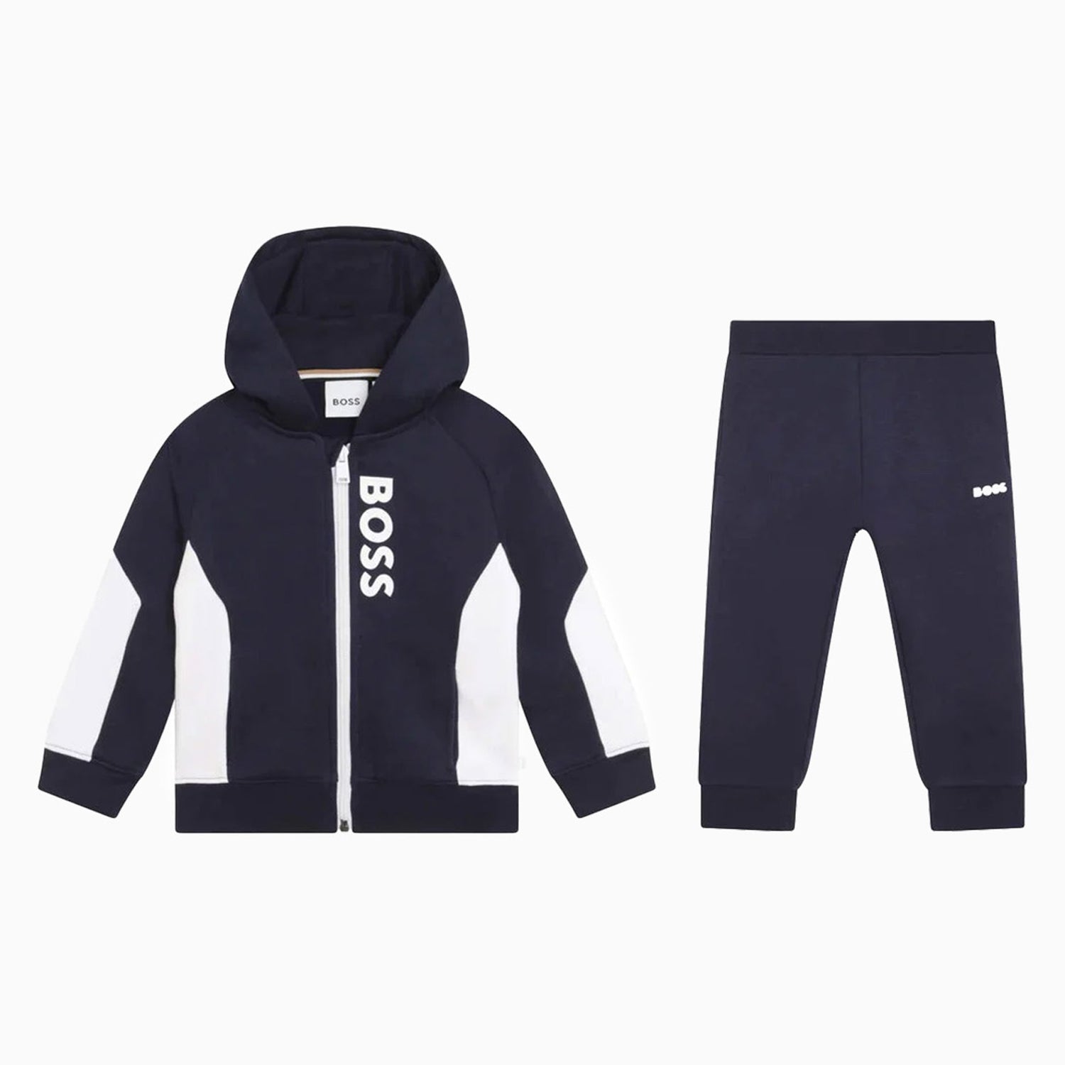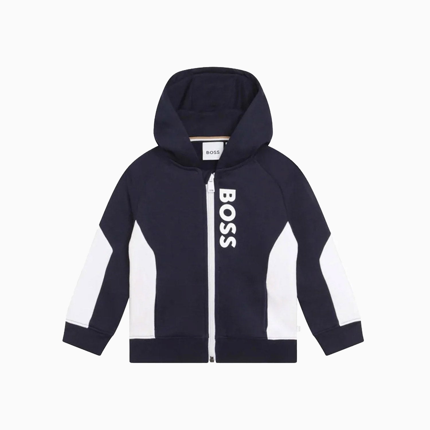 This hooded jersey cardigan from HUGO BOSS is made of soft and comfortable, mid-weight cotton jersey, both pieces have white panels with logo prints, and woven logo tabs.
