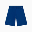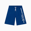 Navy logo Track shorts for boys by BOSS. Made from soft silky polyester, they feature the brand's logo print in white, red, blue, and yellow on the front. They are lightweight, with a mesh lining and a logo elasticated waistband and drawstring.