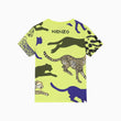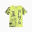 Neon green logo t-shirt for boys. Made in soft cotton jersey. It features the brand's iconic Tiger and Cheetah logo in shades of black, purple, and ivory with logo print on the front and at the back.