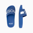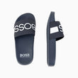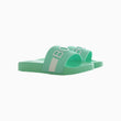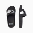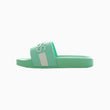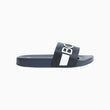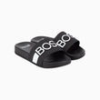 It has a raised white logo on the strap and a cushioned footbed for comfort.