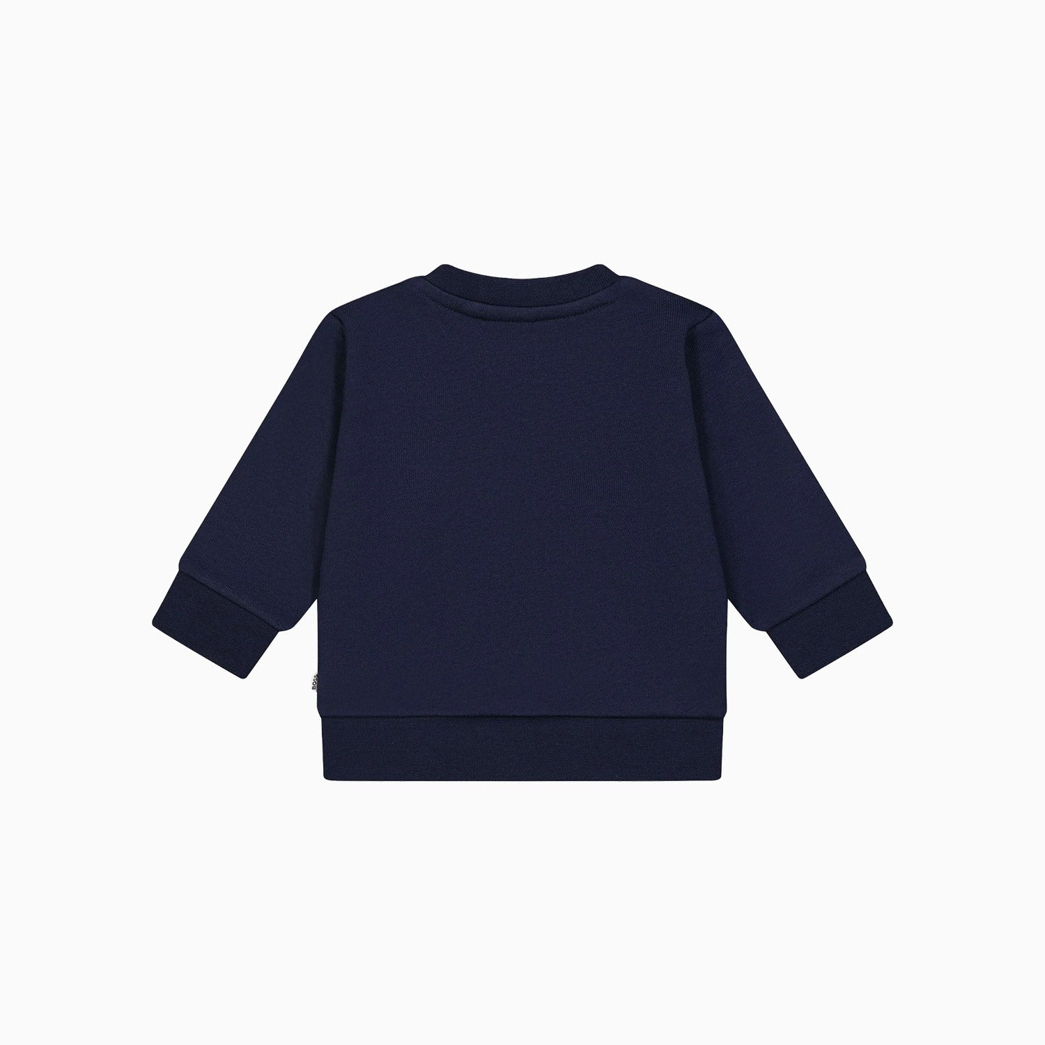 The BOSS sweatshirt has long sleeves and wide edges. It opens at the left shoulder with push buttons, and on the inside, it has soft, brushed cotton. Cotton/polyester fleece sweatshirt with snap fasteners at the shoulder. "BOSS" embossed print on the front.