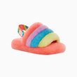 Combining slippers and sandals into an adorable statement shoe, the Fluff Yeah is as good as it sounds and as soft as it looks. Updated in fluffy faux shearling with textured spots and vibrant pop colors that liven up any outfit, it's lined in recycled fleece and finished with a durable sole that's ideal for kids on the move.
