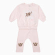 Pink sweatshirt and trousers set from Kenzo Kids. Made of cotton, this set is decorated with a printed and embroidered pattern. The sweatshirt features a fastening at the back, a round neck, long sleeves, and ribbed edges. The trousers have an elastic waistband.