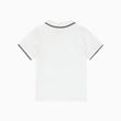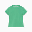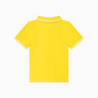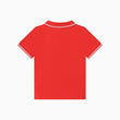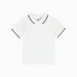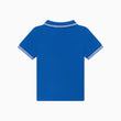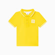 Younger boys in cotton pique polo shirt by BOSS. Features a white rubberized logo badge on the front and white trims to the collar and cuffs.