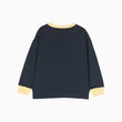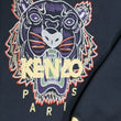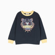 Tiger-print long-sleeved sweatshirt from KENZO KIDS featuring navy blue, cotton, tiger print, an embroidered logo to the front, crew neck, long sleeves, and ribbed cuffs and hem