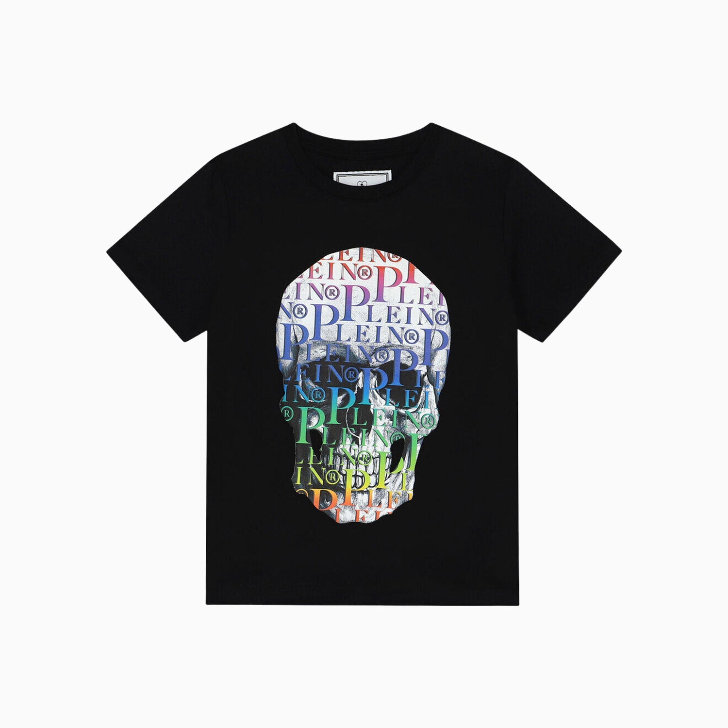 This kid's Rainbow Skull and Plein Short Sleeve T-shirt is perfect for making a statement. Crafted from a lightweight and breathable fabric, the T-shirt provides comfort in any season. It features a classic crew neck and an eye-catching Rainbow Skull and Plein graphics print. Perfect for any occasion.