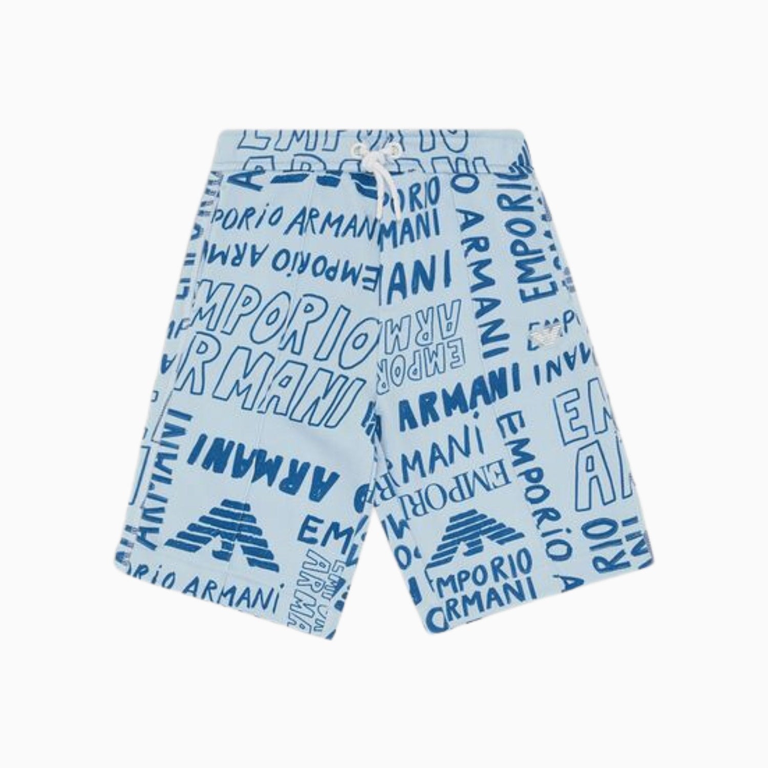 Cotton-jersey fleece board shorts with a drawstring waist and all-over logo lettering print. The item belongs to a fun-inspired collection made of comfortable, vibrantly colored fabrics, featuring a series of on-trend pieces that are easy to mix and match. The EA Crew Capsule Collection is defined by graphic-design details and logos making it modern, fresh, and versatile. Each item in the capsule collection is embellished with a dedicated logo tag.