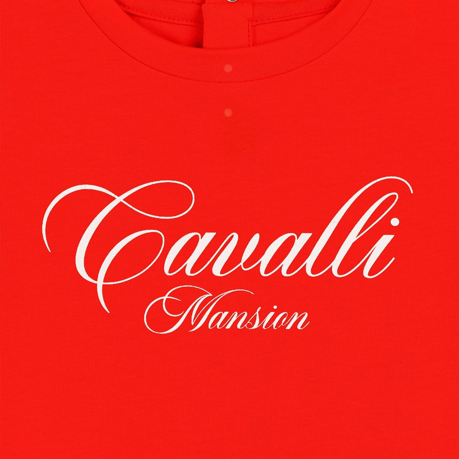 This T-shirt is stamped with a swirling logo and fitted with practical press studs at the back.